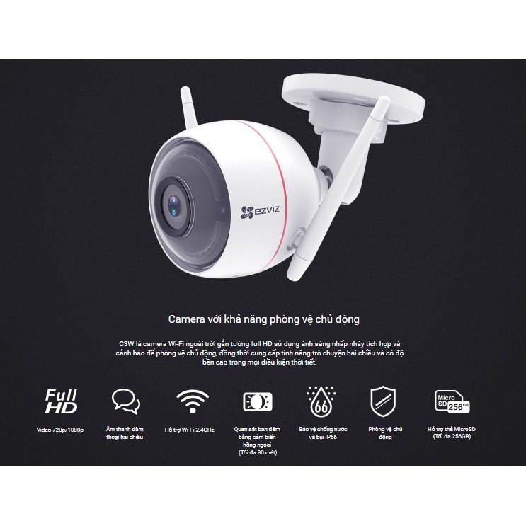 Camera IP Wifi EZVIZ C3W 1080P - Ngoài Trời - Chính Hãng - Bảo Hành 24 Tháng.