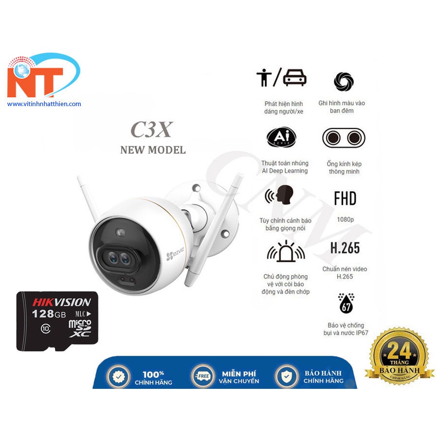 Camera IP Wifi Ngoài Trời Ezviz C3X Bản Mắt Kép, Có Màu Ban Đêm Full HD 1080P - Bảo hành 2 nămChuẩn nén H265+