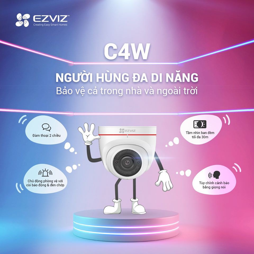 1. Đặc Điểm:- C4W giúp bảo vệ những khu vực ngoài trời của ngôi nhà hoặc cửa hàng của bạn một cách chuyên nghiệp và ổn định với khả năng chủ động phòng vệ, tầm nhìn xa ban đêm, đàm thoại hai chiều, tiêu chuẩn chống nước, bụi IP67 và nhiều hơn nữa.