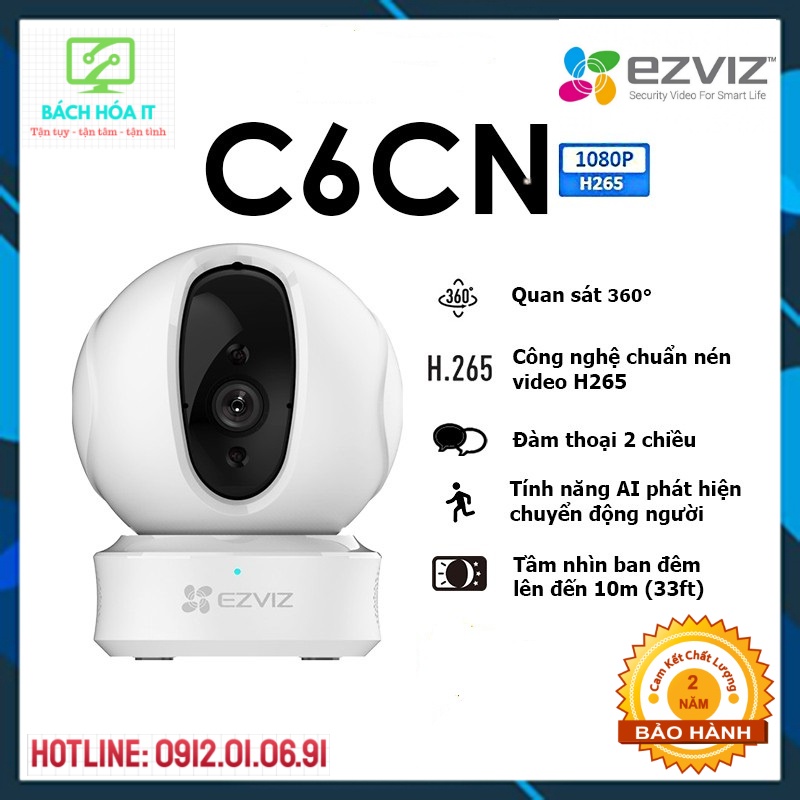 Camera IP Wifi Ezviz C6CN 1080p chuẩn nén H265 SmartHome Thông Minh AI Nhận Diện Người, chính hãng, bảo hành 2 năm