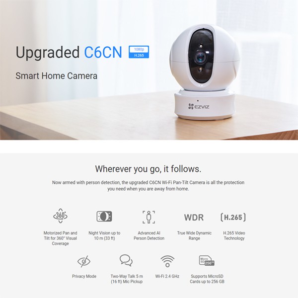 Giới thiệu Camera IP Wifi Ezviz C6CN H265 - Chính hãng tặng kèm thẻ nhớ 32Gb
