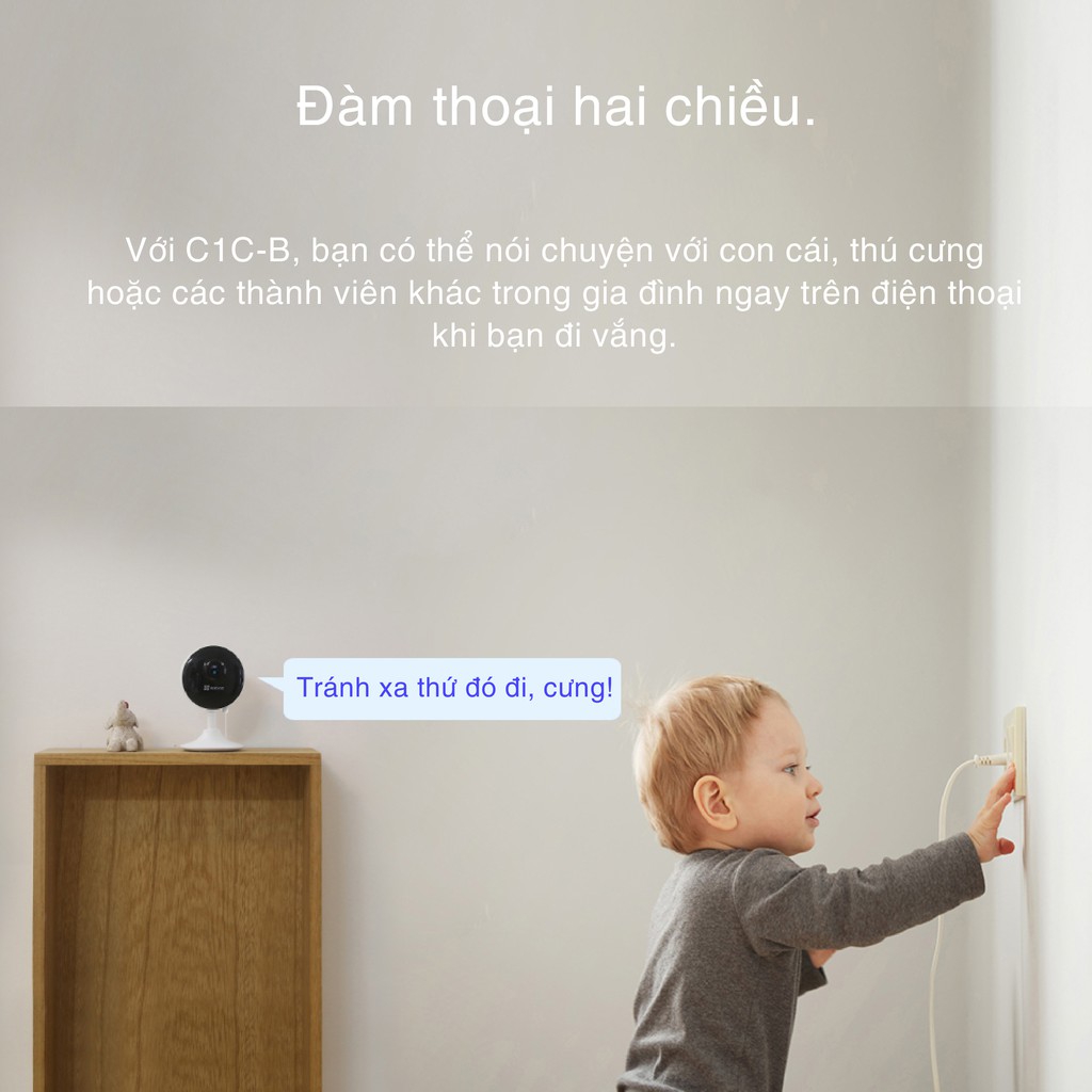 Với Camera Wifi Ezviz 2MP, bạn có thể dễ dàng nói chuyện với con mình, thú cưng hoặc các thành viên khác trong gia đình ngay trên điện thoại khi bạn vắng nhà.