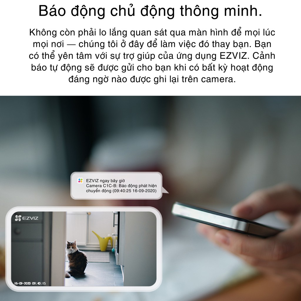 Bạn không cần phải quan sát điện thoại, máy tính 24/24 nữa mà hãy yên tâm với tính năng cảnh báo tự động của C1C-B 1080P. Bất kỳ hoạt động đáng ngờ nào được ghi lại trên camera sẽ tự động thông báo về điện thoại của bạn.