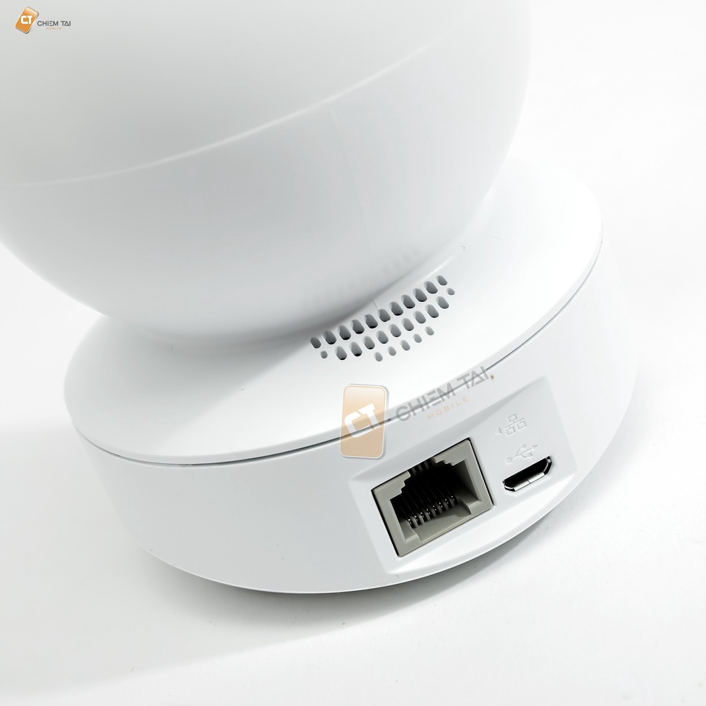 Camera sử dụng ống kính có tiêu cự 4mm, khẩu độ F2.4 cho góc nhìn cực rộng và bao quát toàn cảnh. Điểm đặc biệt của sản phẩm là camera không có điểm mù khi có thể xoay 360°, do đó người dùng có thể quan sát toàn bộ căn phòng chỉ với một chiếc camera duy nhất.