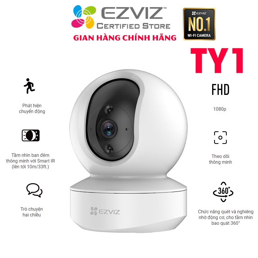 Giới thiệu Camera IP Wifi hồng ngoại EZVIZ TY1 2.0Mp 1080P (CS-TY1-B0-1G2WF)