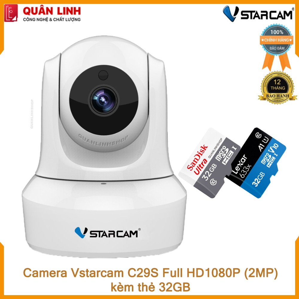 THÔNG TIN SẢN PHẨM- Tên sản phẩm: Camera IP Wifi hồng ngoại Vstarcam C29s Full HD 1080P kèm thẻ 32GB Class 10