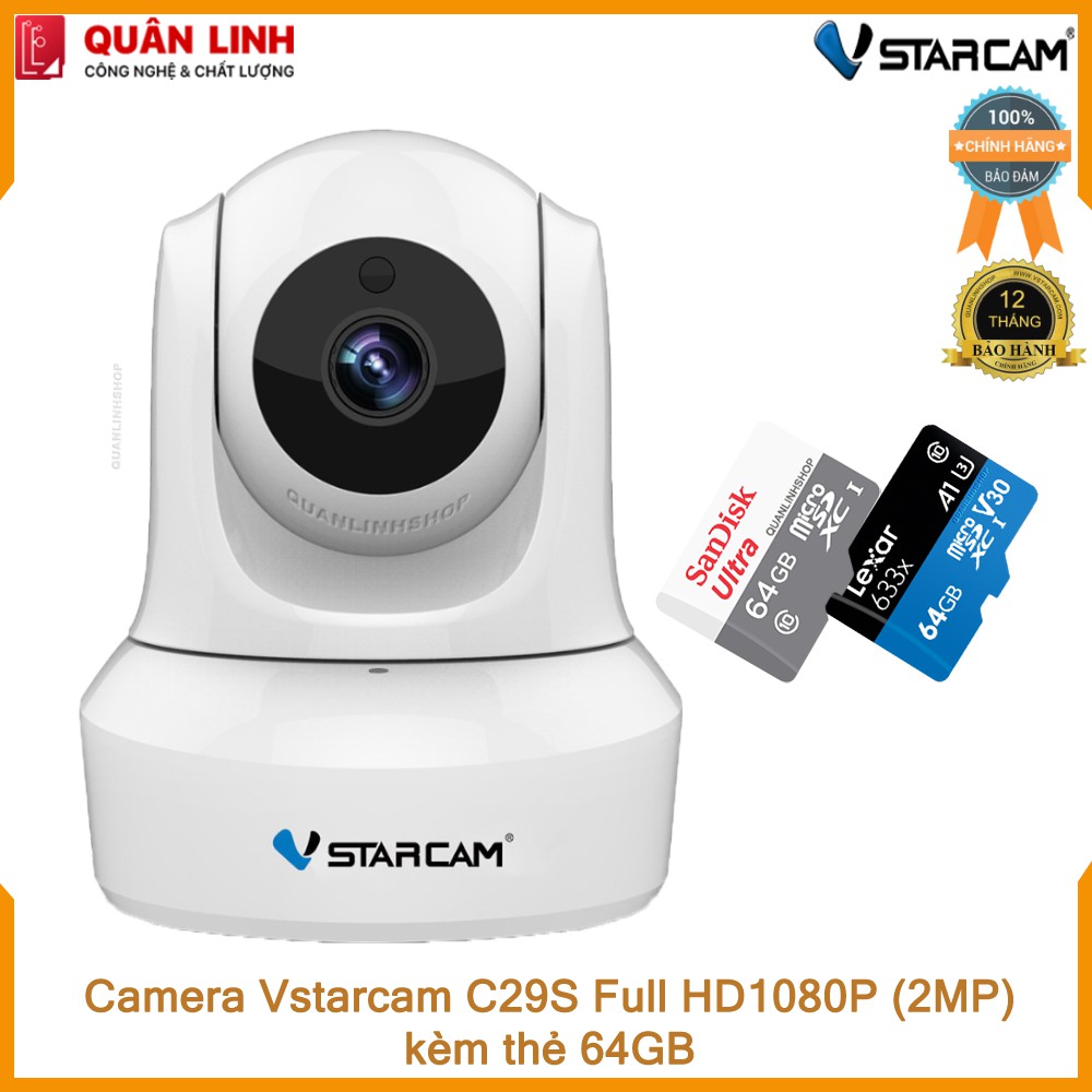 THÔNG TIN SẢN PHẨM- Tên sản phẩm: Camera IP Wifi hồng ngoại Vstarcam C29s Full HD 1080P kèm thẻ 64GB Class 10