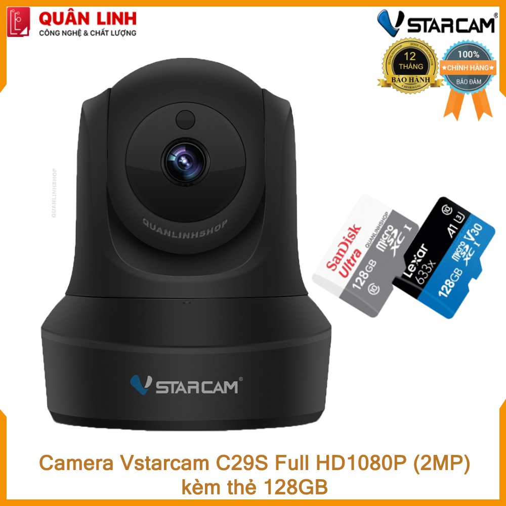 Camera IP Wifi hồng ngoại Vstarcam C29s Full HD 1080P 2MP màu đen kèm thẻ 128GB class 10