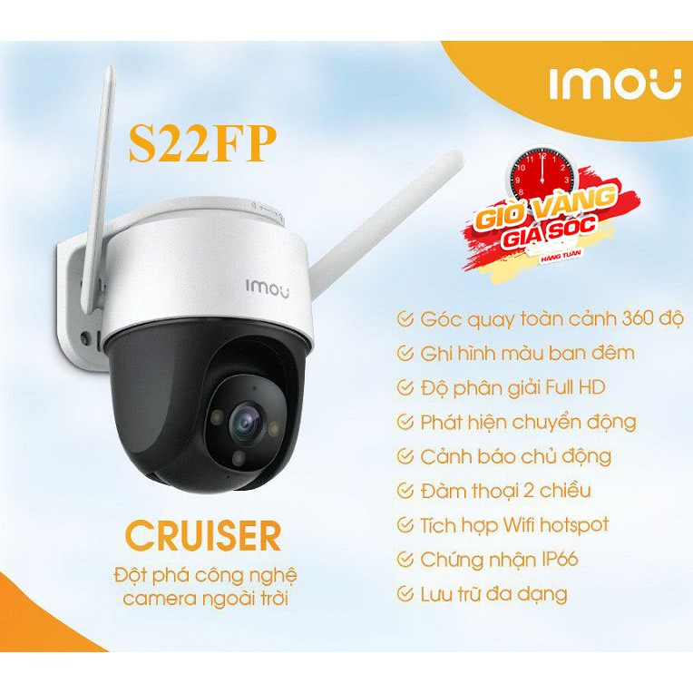 Camera IP Wifi Imou ngoài trời IPC-S22FP 2.0MP 1080P Full HD - Tích hợp báo động còi hú , Độ nét cao, ban đêm có màu