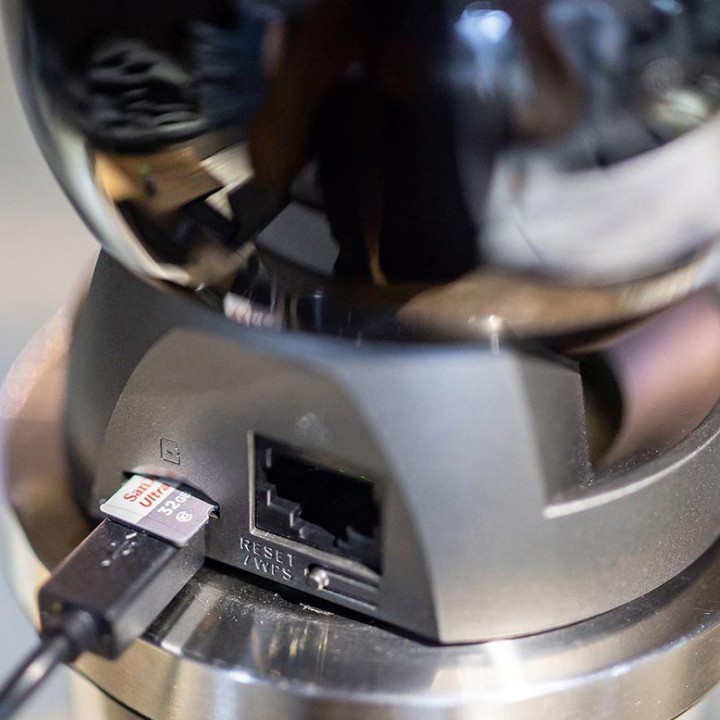 - Mặt sau chúng ta có khe thẻ nhớ microSD, cổng cắm microUSB để cấp nguồn cho camera và nút reset/WPS giúp setup nhanh mạng không dây hoặc reset thiết bị. Ngoài ra, trên chiếc Imou này còn có một cổng LAN rất hữu dụng nếu bạn muốn kết nết có dây để ổn định hơn.
