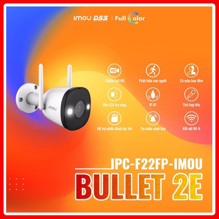 - Camera không dây IMOU IPC-F22FP (Tên quốc tế là iMou Bullet 2E) truyền tải hình ảnh ở độ phân giải Full HD, nhờ đó hình ảnh rõ đẹp và sắc nét. Camera chủ động giữ các mối đe dọa tránh xa những gì bạn quan tâm.