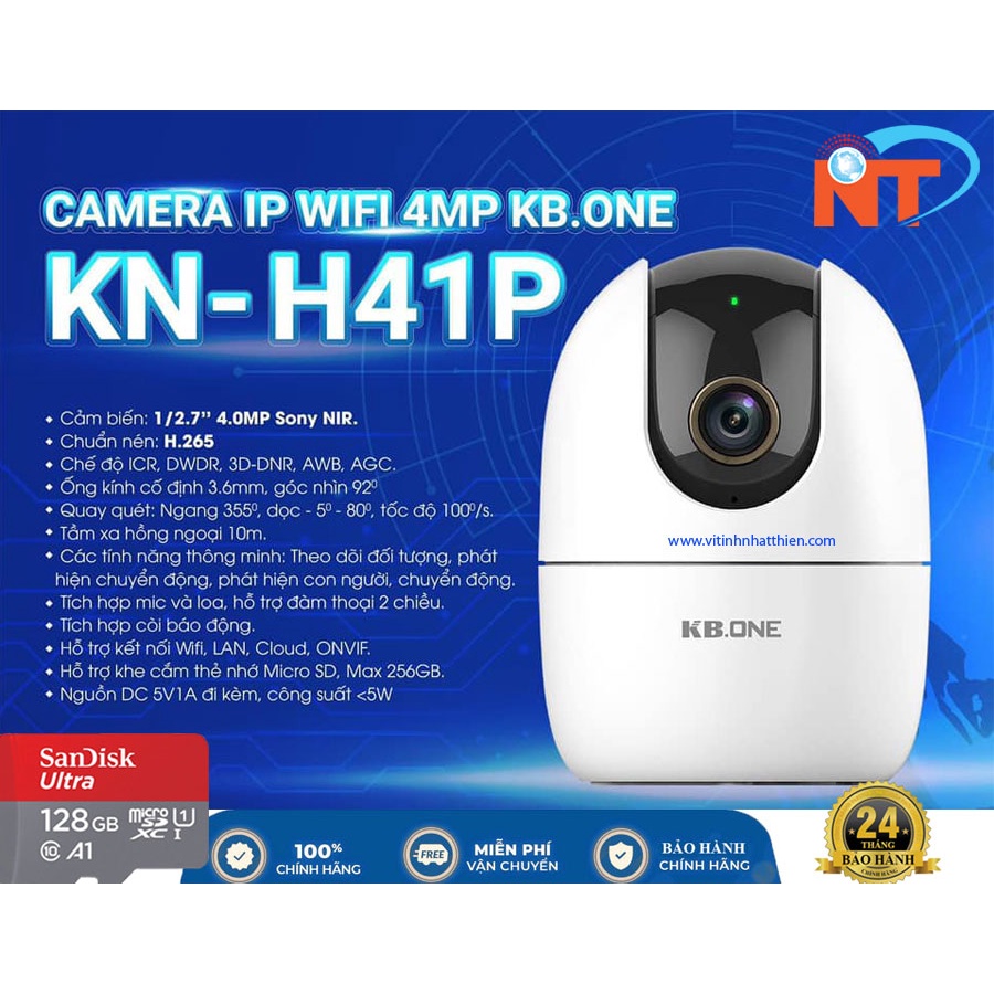 CAMERA IP WIFI KBONE KN-H41P 4MP, XOAY 360 ĐỘ, ĐÀM THOẠI 2 CHIỀU, bảo hành chính hãng 2 năm