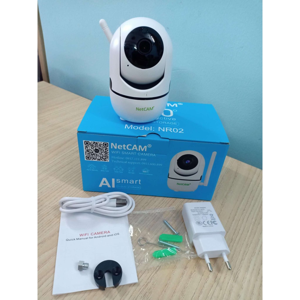 Camera IP WiFi NetCAM NR02, độ phân giải 3MP, Xoay 360 độ, Đàm thoại 2 chiều, Theo dõi chuyển động thông minh