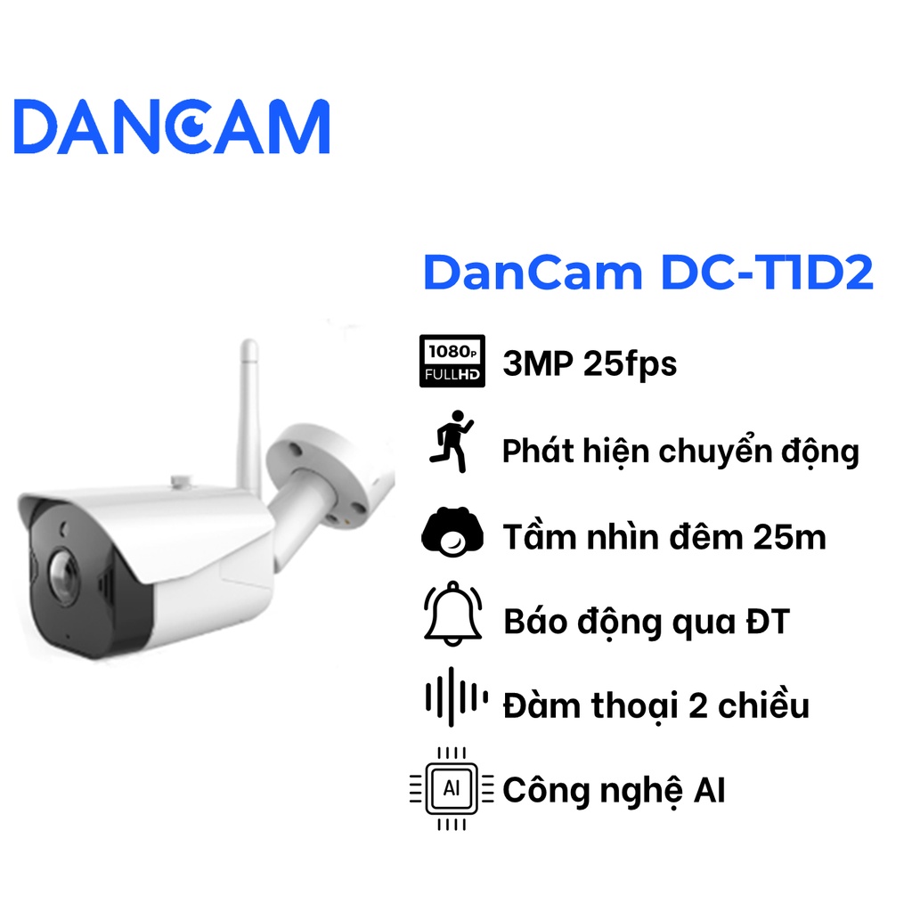 Giới thiệu [Mã BMBAU300 giảm 7% đơn 499K] camera IP wifi ngoài trời full HD 1080p - DanCam DC-T1D2
