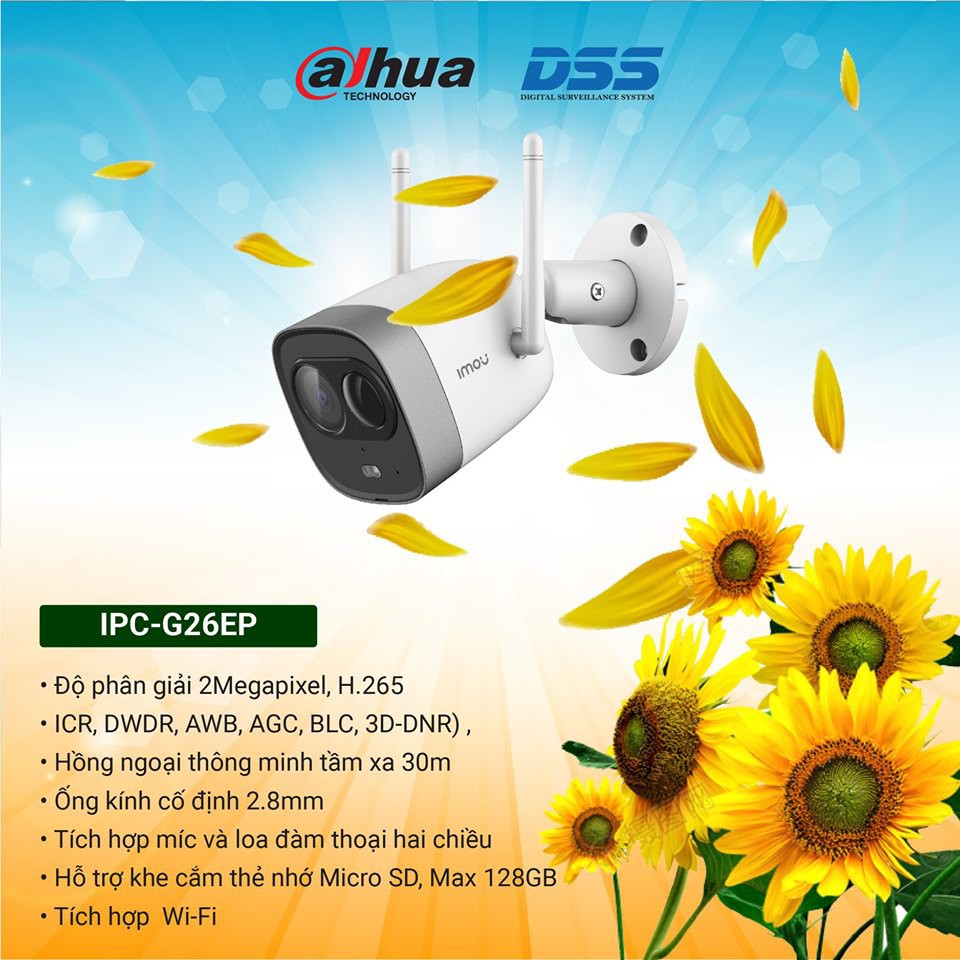 CAMERA IP WIFI NGOÀI TRỜI IMOU IPC-G26EP 2.0 MEGAPIXEL, ÂM THANH 2 CHIỀU, CHUẨN CHỐNG NƯỚC IP67