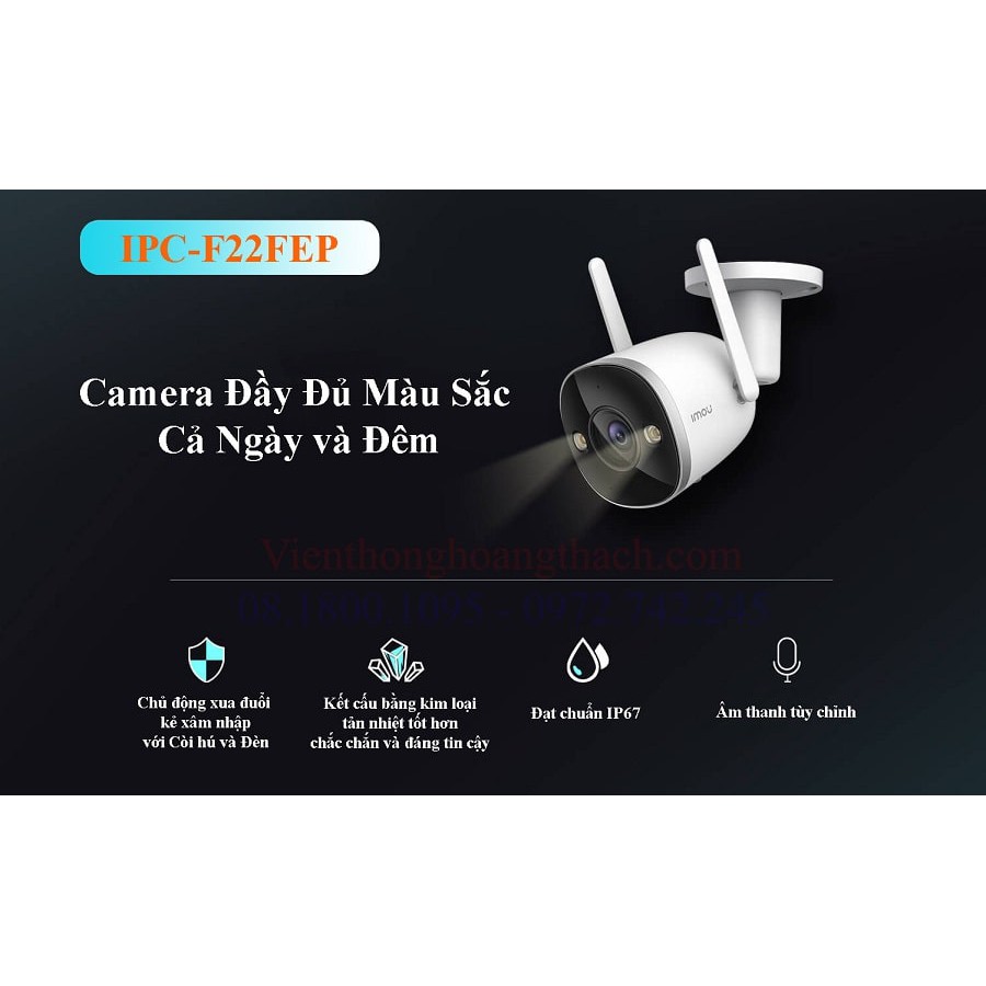 - Camera Wifi Imou F22FEP: 2MP 1080P, đàm thoại 2 chiều, full color có màu ban đêm và còi hú báo động