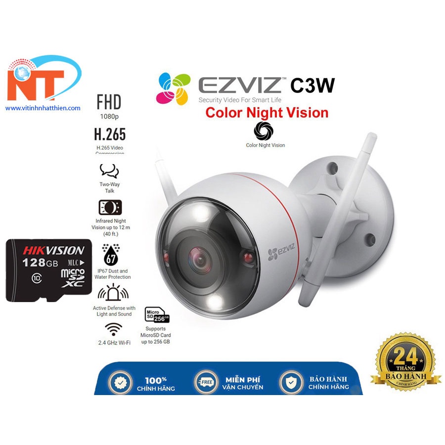 Camera IP Wifi hồng ngoại ngoài trời EZVIZ C3W 2Mp có đèn còi VÀ đàm thoại 2 chiều - hổ trợ thẻ nhớ lên đến 256G