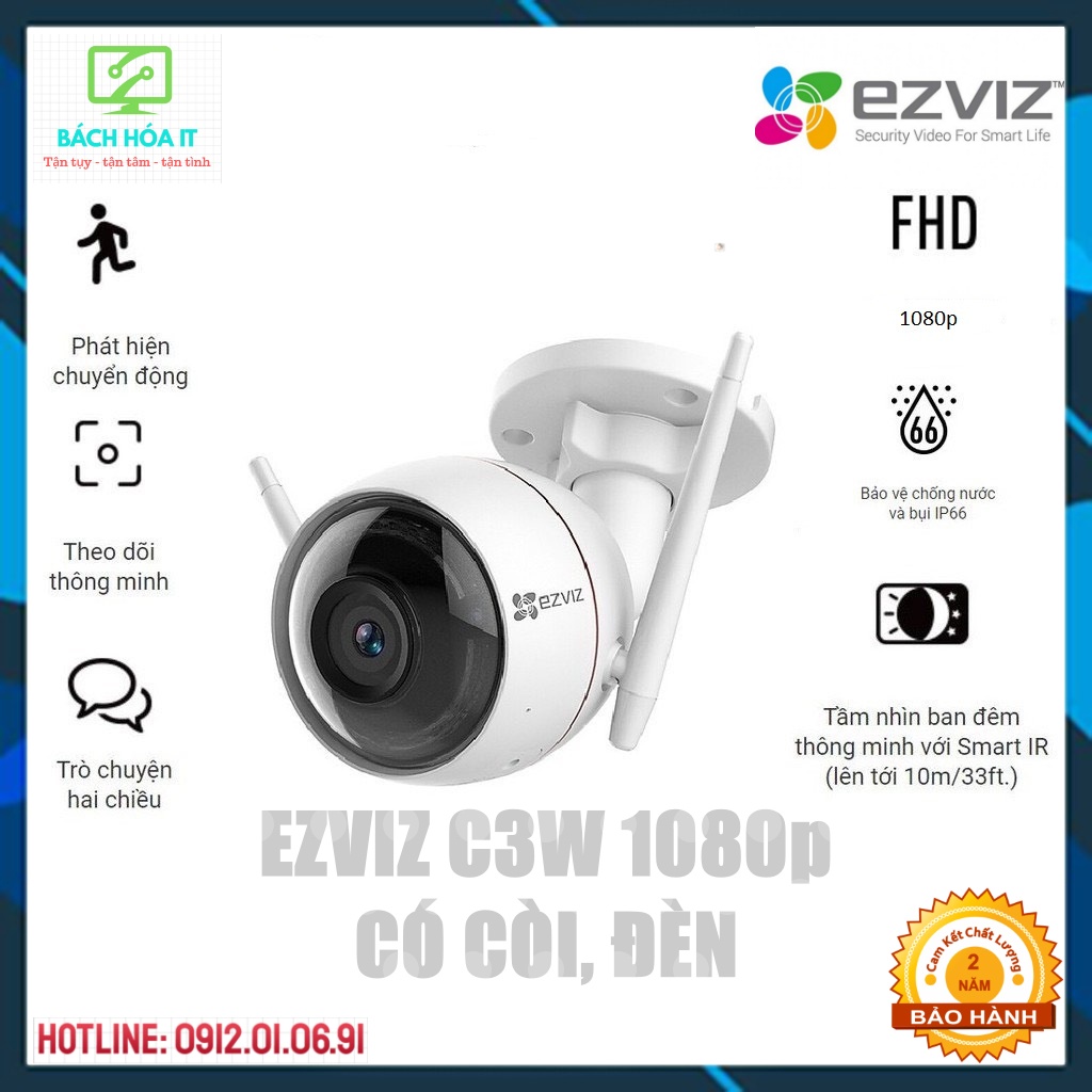 Camera IP Wifi ngoài trời EZVIZ CV310, EZVIZ C3W 1080p, có còi đèn, báo động, chính hãng, bảo hành 24 tháng