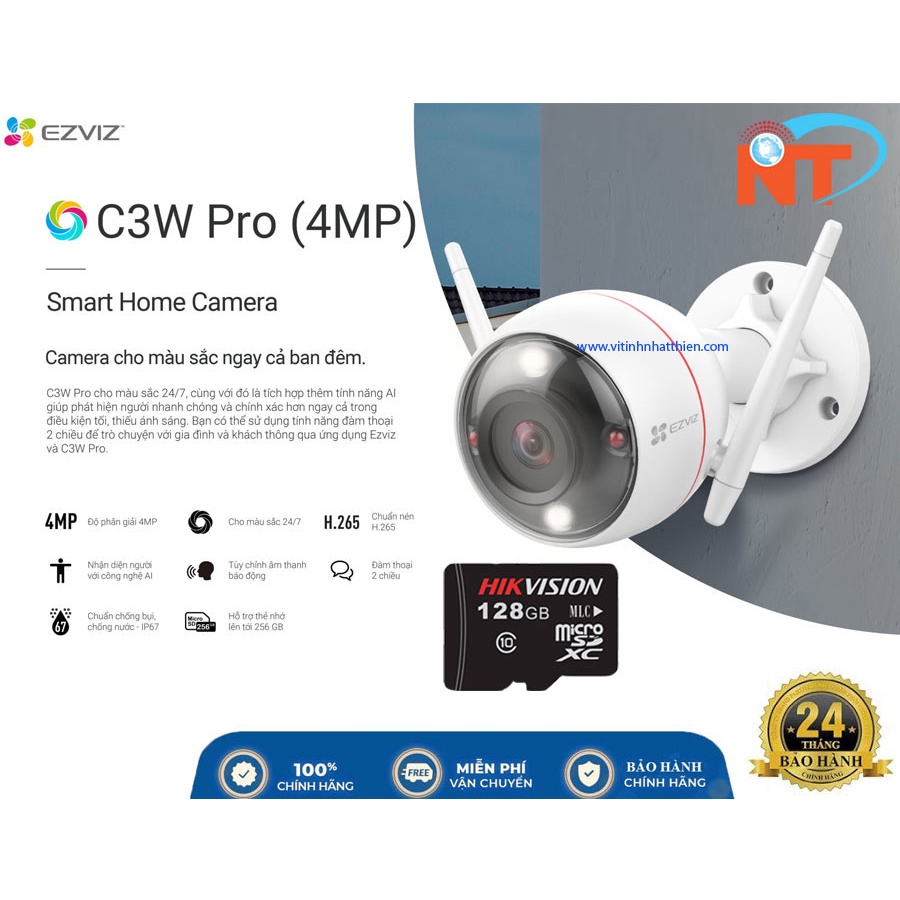 Camera IP Wifi ngoài trời EZVIZ C3W Pro 4Mp độ nét 2K - ban đêm có màu - đàm thoại 2 chiều - hổ trợ thẻ nhớ lên đến 256G
