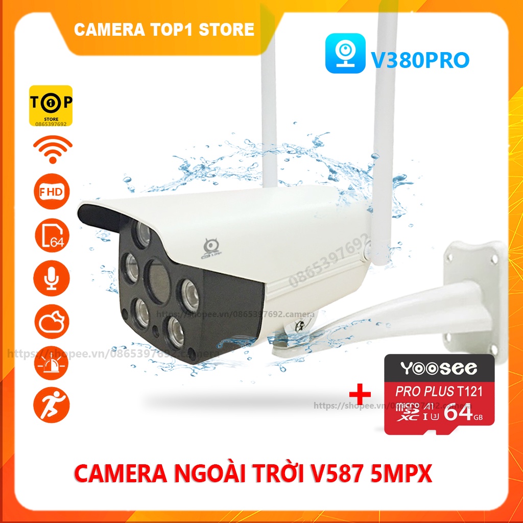 Camera Ip WiFi Ngoài Trời V380Pro mode V587 5Mpx Chống Nước