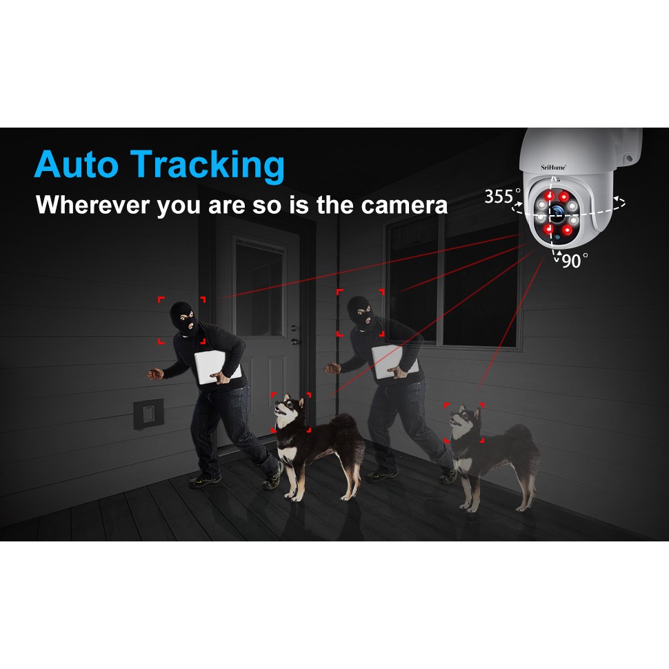 Camera IP Wifi ngoài trời PTZ SriHome SP028 2.0MP FullHD 1080P, Xoay 355 độ, chống nước IP66 (Trắng) - 4 Phân Loại