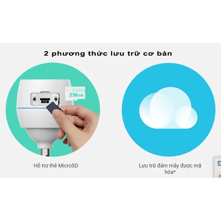Giống như các loại camera IP khác trên thị trường, EZVIZ C3TN 1080P cũng hỗ trợ 2 tùy chọn lưu trữ cơ bản, cho phép người dùng linh hoạt lựa chọn phương thức phù hợp nhất. Cụ thể, camera đi kèm với khe cắm thẻ nhớ Micro SD được tích hợp có thể lưu trữ tối đa 256GB các cảnh quay đã ghi hình.