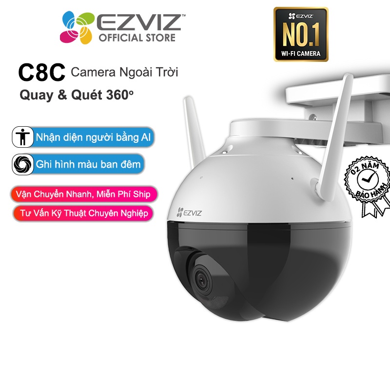 Camera IP WIFI PT C8C EZVIZ 2.0MP, C8W 4M 2K có báo động, Ngoài Trời Full Cao Cấp Xoay 360