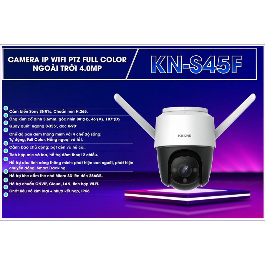 THÔNG SỐ KỸ THUẬT VÀ TÍNH NĂNG CỦA CAMERA KBONE KN-S45F- Camera IP Wifi PTZ Full Color.