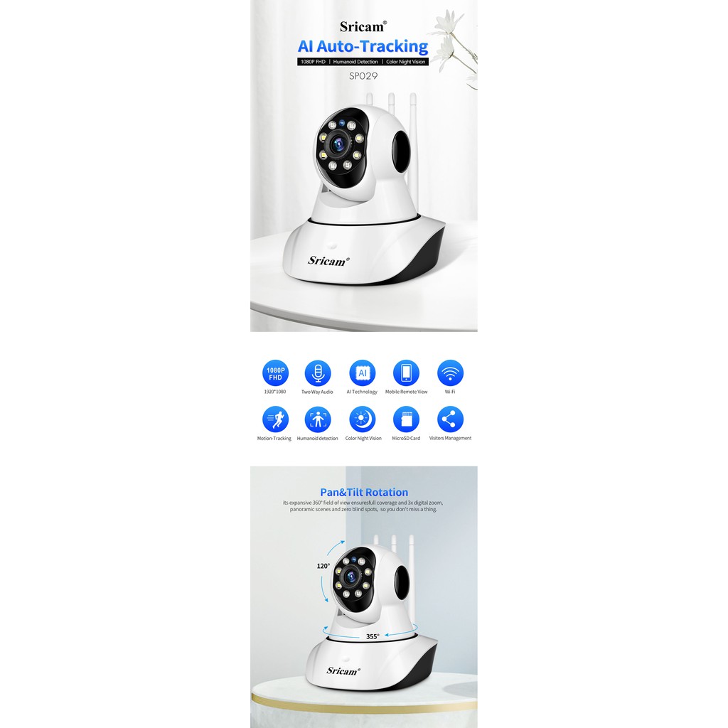 Camera IP Wifi SriHome SP029 3 Râu 3MP FullHD+ 1536P, Có màu ban đêm, Xoay 355 độ (Trắng) - 4 Phân Loại tùy chọn - Nhất Tín ComputerCHỨC NĂNG NỔI BẬT: