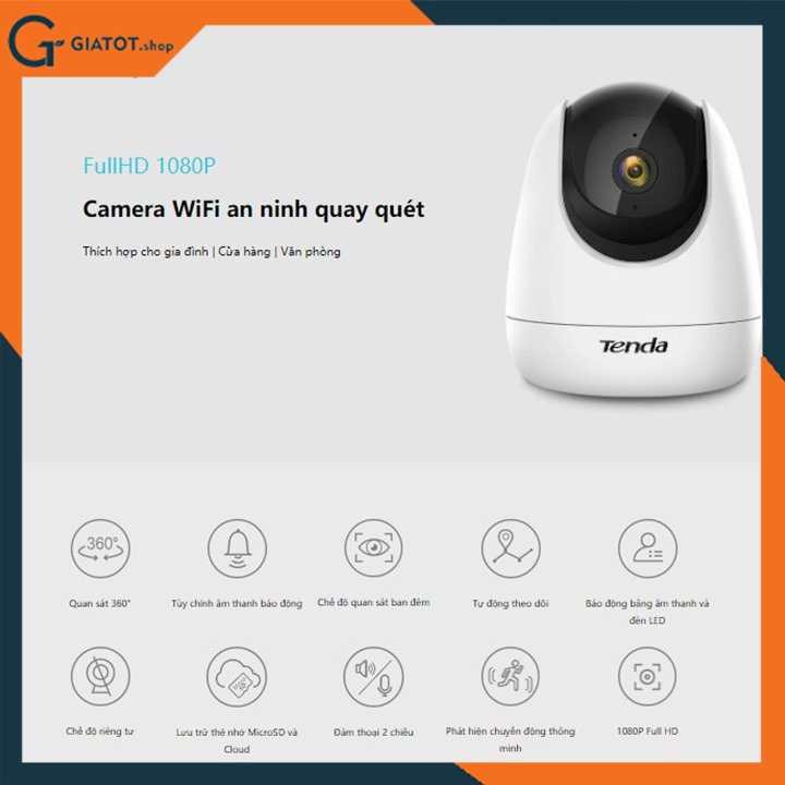 Camera IP Wifi Tenda CP3 Full HD 1080P xoay 360° kèm thẻ nhớ 32g,64g Chính hãng