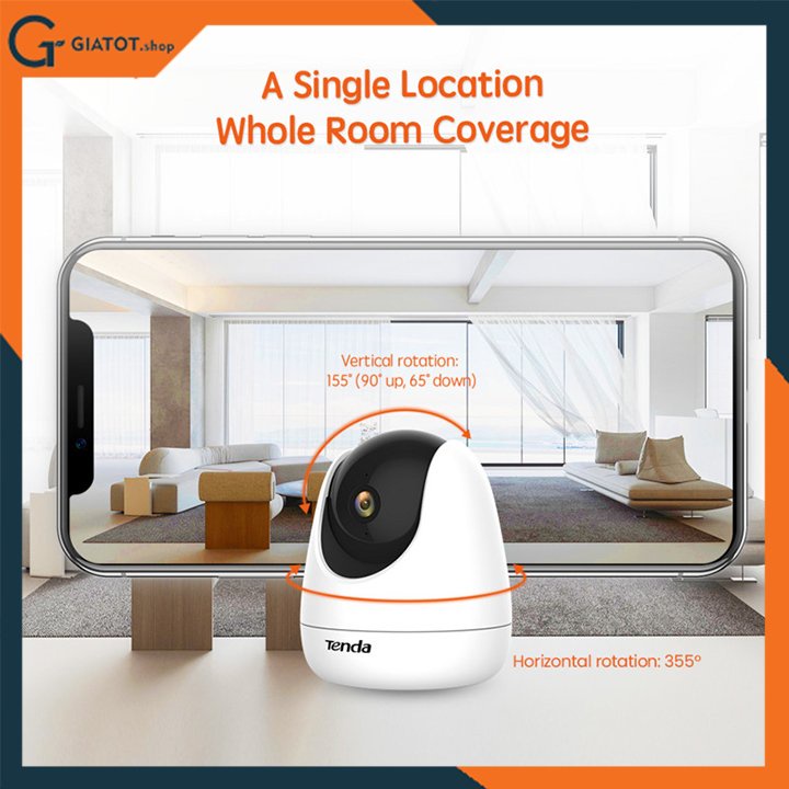 => Quan sát mọi nơi trong ngôi nhà của bạn Nhờ động cơ mạnh mẽ mang lại khả năng quay quét tốc độ cao, Tenda CP3 có thể quay ngang 360° và dọc 155° (90° trên, 65° dưới) mang lại tầm nhìn toàn cảnh không góc chết.