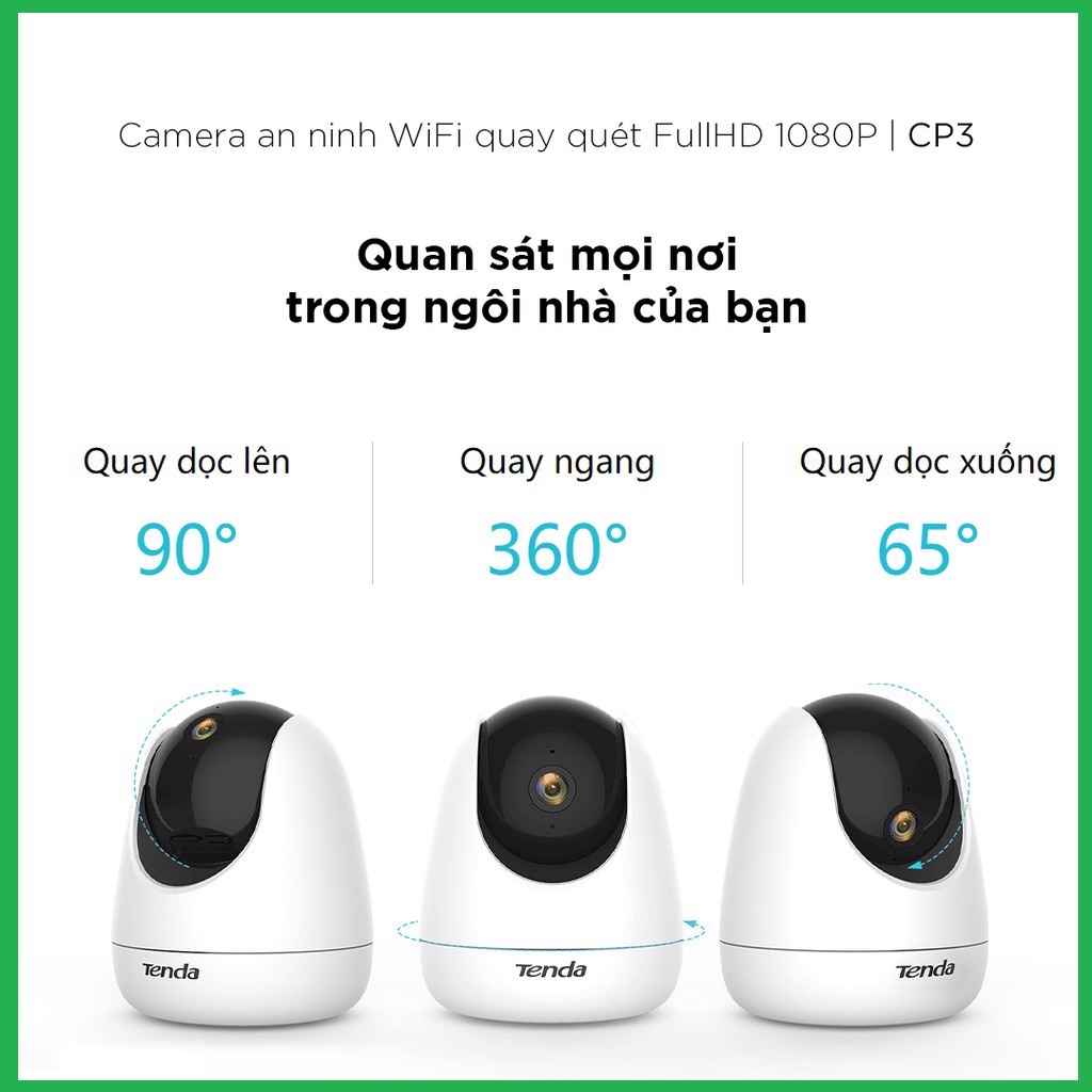 Camera IP Wifi Tenda CP3 Full HD 1080P 360° , Full HD 1080P , Đàm Thoại 2 Chiều , Theo Dõi Chuyển Động