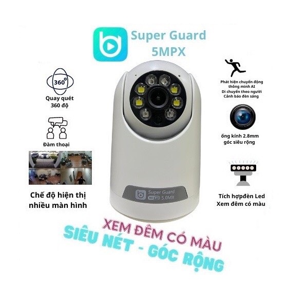 Giới thiệu [Mã 44ELSALE2 giảm 7% đơn 300K] Camera IP Wifi thông minh Super Guard 5.0Mp - Siêu nét góc rộng