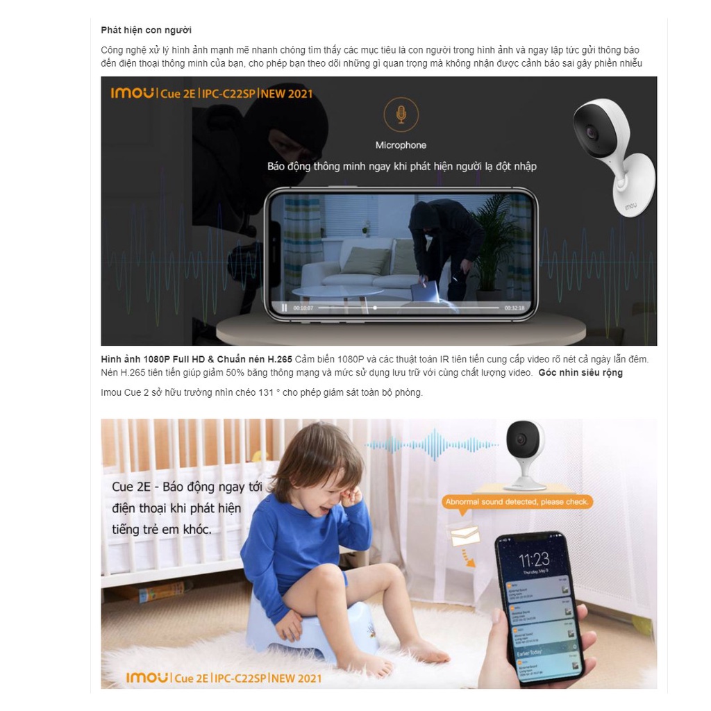 - Điểm khác biệt giữa sản phẩm này và mã trên là C22CP chỉ có mic thu ( mic âm thành) không có chức năng đàm thoại 2 chiều như sản phẩm Imou C22EP