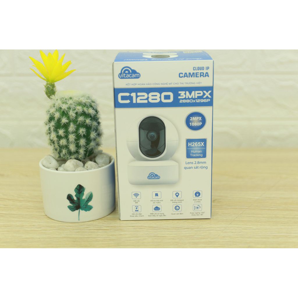VITACAM C1280 2.0MP - Độ phân giải 2MPX chuẩn FullHD - Lens 2.8mm góc quan sát siêu rộng. Công nghệ AI, xoay 360 độ.