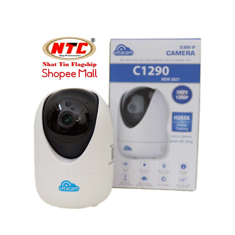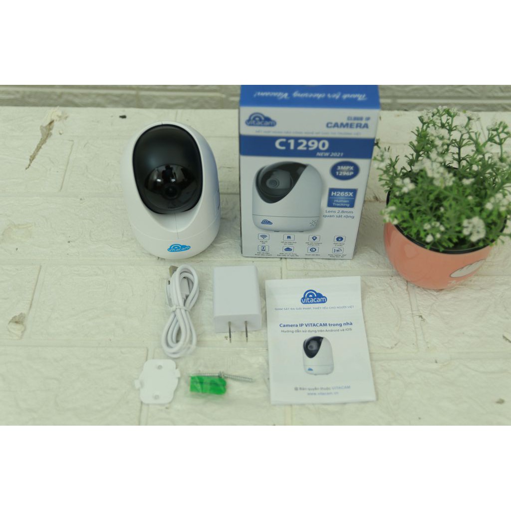 VITACAM C1290 - Độ phân giải 3MPX chuẩn Ultra HD - lens 2.8mm góc quan sát siêu rộng, quan sát ban đêm, xoay 360 độ, đàm thoại hai chiều, human tracking.