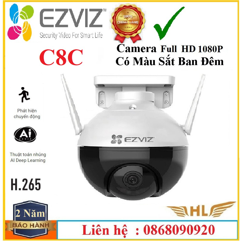 Camera ngoài trời wifi EZVIZ C8C Full HD 1080P xoay 360 độ Tích hợp AI -Có màu ban đêm