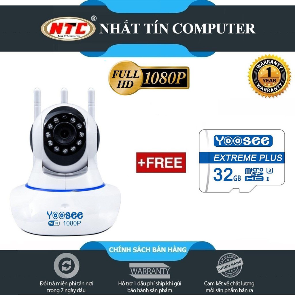 Camera IP Wifi Yoosee 3 Râu HD 1080P 10 đèn hồng ngoại đàm thoại 2 chiều (Trắng) + Kèm thẻ Yoosee/Vitacard 32GB