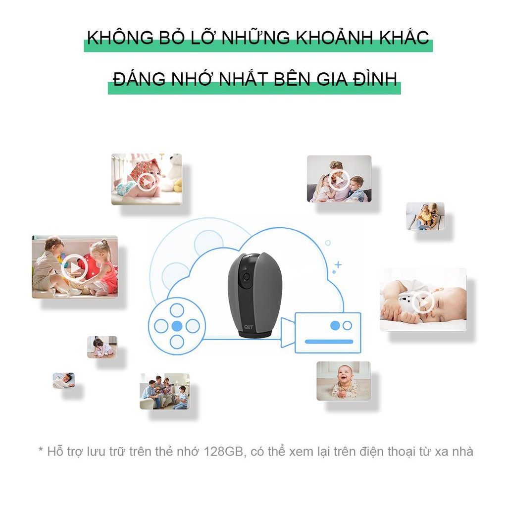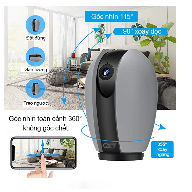 ✔Là camera giám sát gia đình có thể xoay 360° của hãng QCT