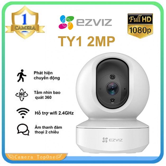 Camera không dây EZVIZ TY1 wifi HD1080P 2MP đàm thoại 2 chiều xoay theo chuyển động..Camera không dây EZVIZ TY1 wifi HD 1080P 2mp được trang bị chức năng Smart IR, sử dụng ánh sáng hồng ngoại (IR) tiên tiến để thu được nhiều chi tiết hơn trong ánh sáng mờ. Với tầm nhìn 360 độ và chức năng theo dõi thông minh theo vật thể chuyển động, bạn đã không cần phải lo lắng về việc hạn chế tầm nhìn.