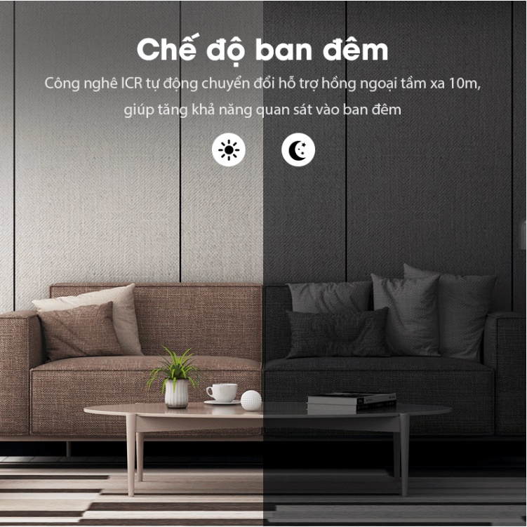 - Chế độ ban đêm: Công nghệ ICR tự động chuyển đổi hỗ trợ hồng ngoại tầm xa 10m, giúp tăng khả năng quan sát vào ban đêm.