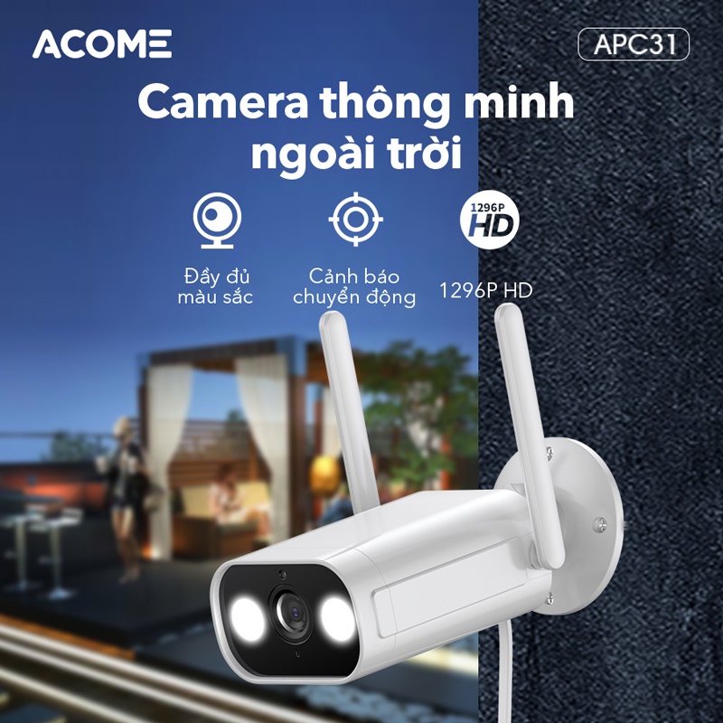 Cameras & Flycam > Camera giám sát > Camera giám sát kết nối internet || Camera ngoài trời ACOME APC31, Quay có màu ban đêm, Độ nét cao FullHD, Đàm thoại 2 chiều, Bảo hành 12 thángCòn hàng