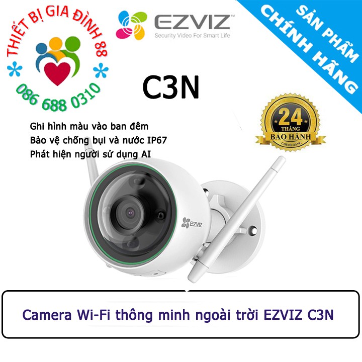Camera ngoài trời EZVIZ C3N 1080P công nghệ AI thông minh - Có màu ban đêm C3W C3X C3WN Color