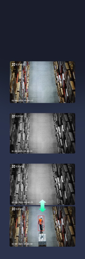“Khi không cần chiếu thêm đèn, bạn chỉ cần chuyển camera sang chế độ ghi hình ban đêm đen trắng qua Ứng dụng EZVIZ để tắt đèn rọi. Tuyệt hơn nữa, bạn có thể chọn chế độ ghi hình ban đêm thông minh. Ở chế độ này, C3N sẽ tự động chuyển từ chế độ giám sát đen trắng sang giám sát màu và bật đèn rọi khi phát hiện chuyển động của người. Video cảnh báo sẽ được ghi hình màu để bạn có thể quan sát toàn bộ chi tiết quan trọng.”