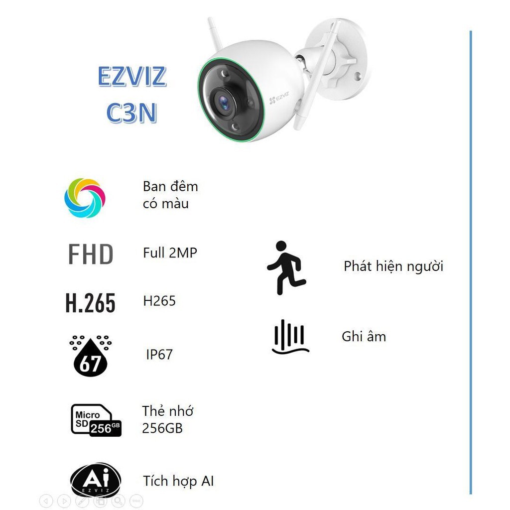 Camera ngoài trời EZVIZ C3N 1080P công nghệ AI thông minh-Có mầu ban đêm
