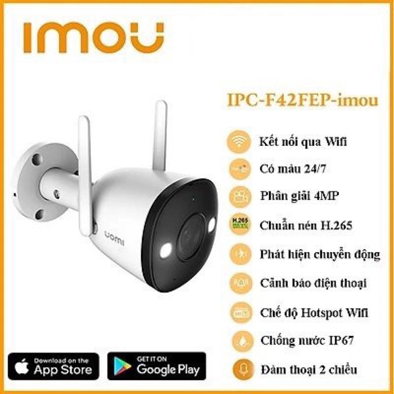 4MP Fullcolor Bullet Wifi Camera ImouTích hợp đèn trợ sáng cho hình ảnh ban đêm có màu