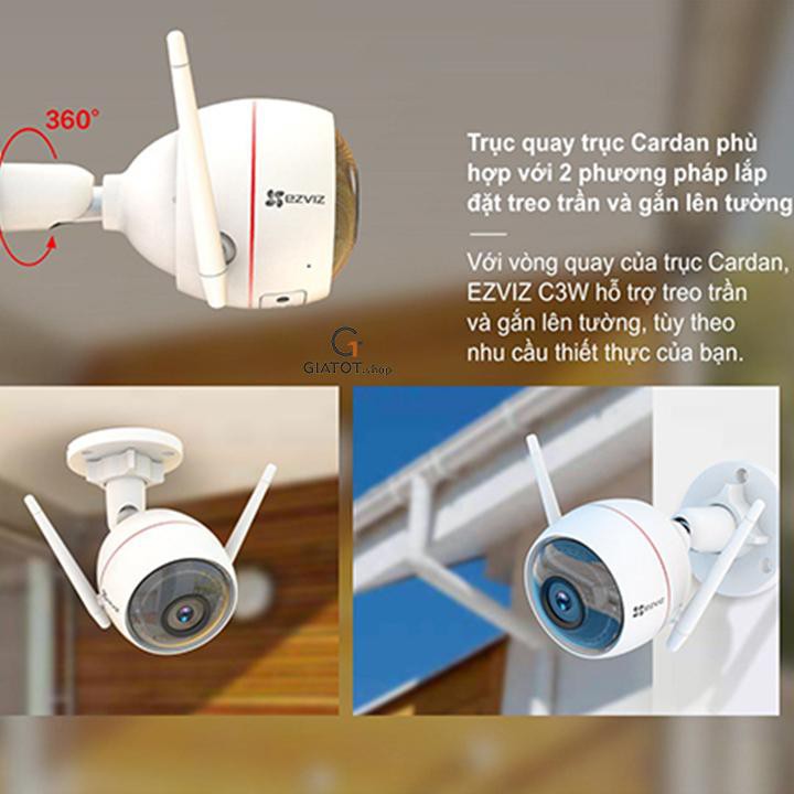 Với vòng quay của trục Cardan, Camera EZVIZ CS-C3WN phù hợp với 2 hình thức lắp đặt trên trần nhà hoặc gắn lên tường tùy theo nhu cầu sử dụng của người dùng.