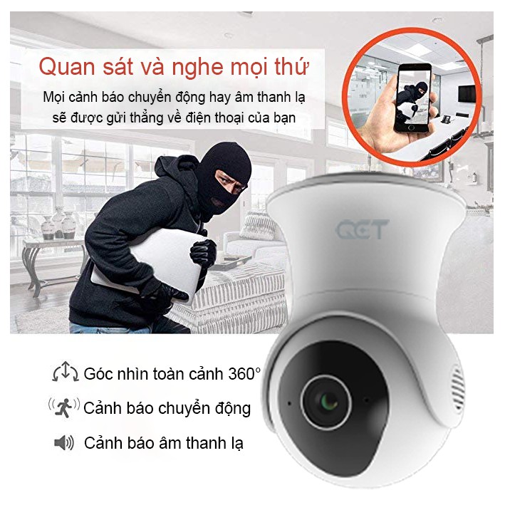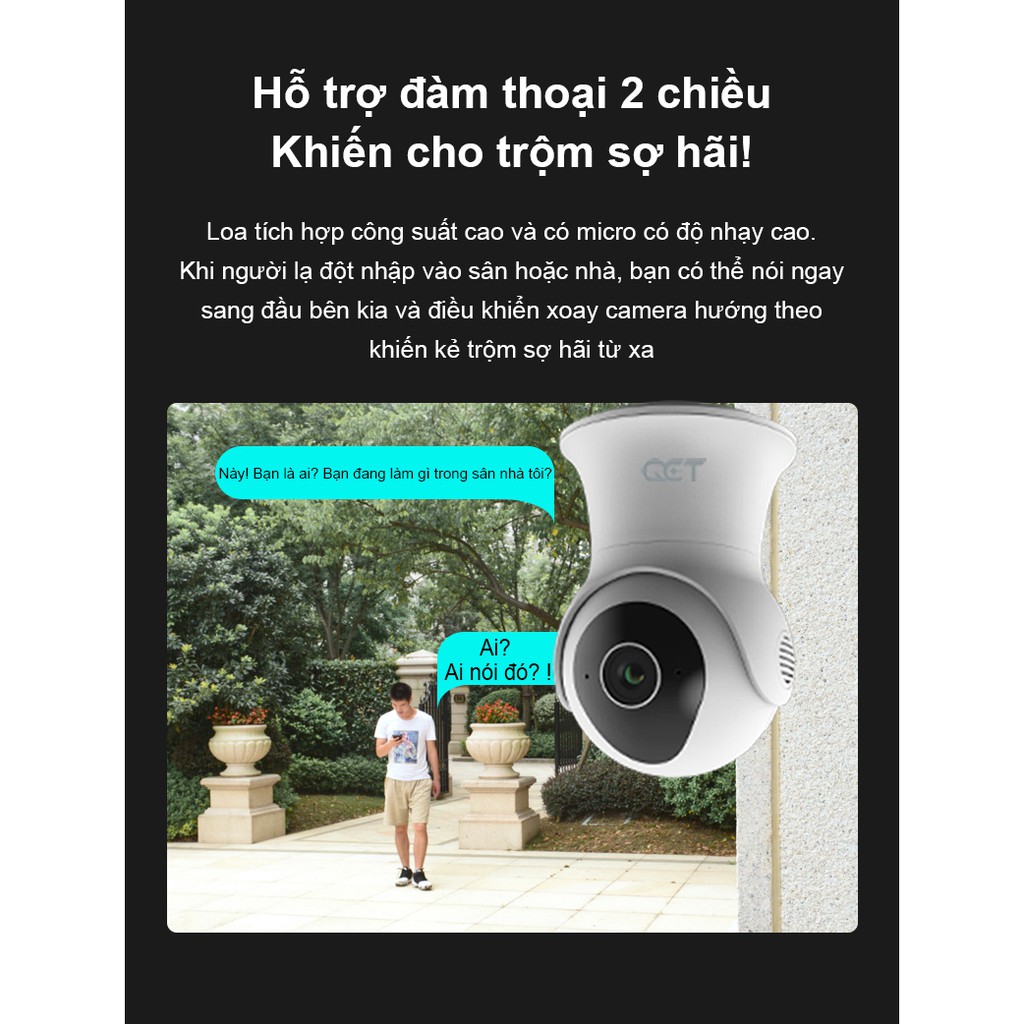 Giới thiệu Camera ngoài trời QCT xoay 360 độ 1296p quốc tế:✔ Là camera giám sát gia đình để ngoài trời của hãng QCT