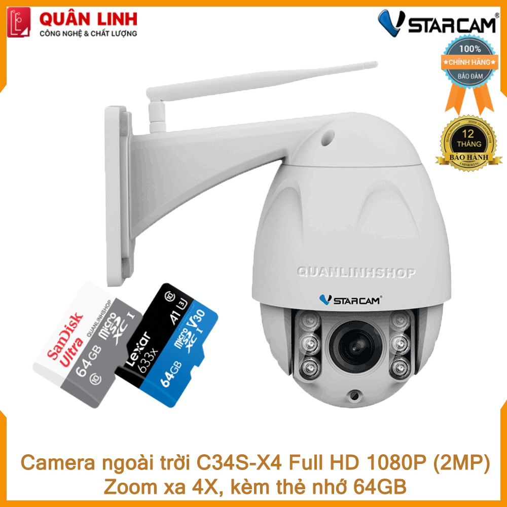 THÔNG TIN SẢN PHẨM- Tên sản phẩm: Camera ngoài trời Vstarcam C34s-X4 Zoom 4X Full HD 1080P kèm thẻ 64GB Class 10