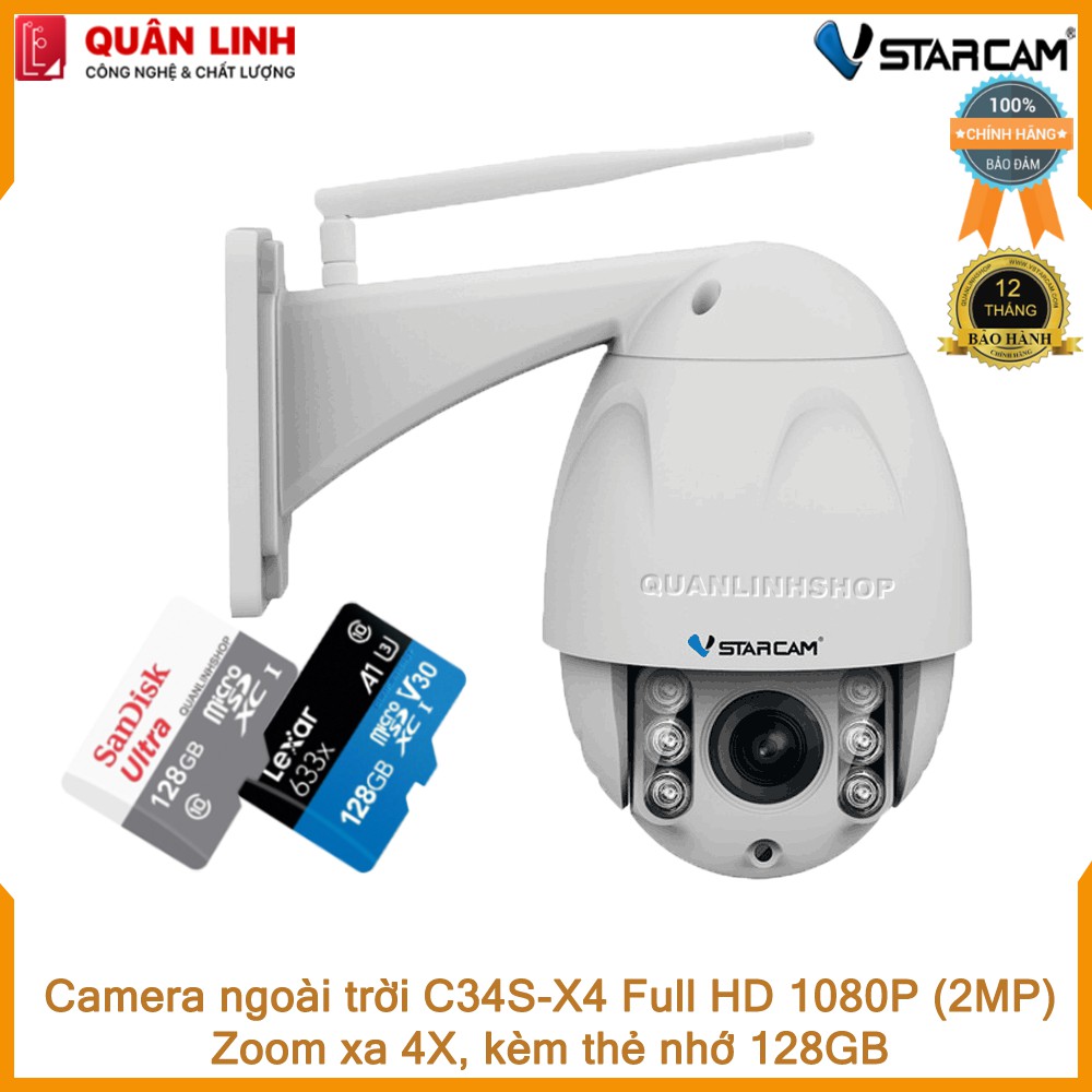 THÔNG TIN SẢN PHẨM- Tên sản phẩm: Camera ngoài trời Vstarcam C34s-X4 Zoom 4X Full HD 1080P kèm thẻ 128GB Class 10